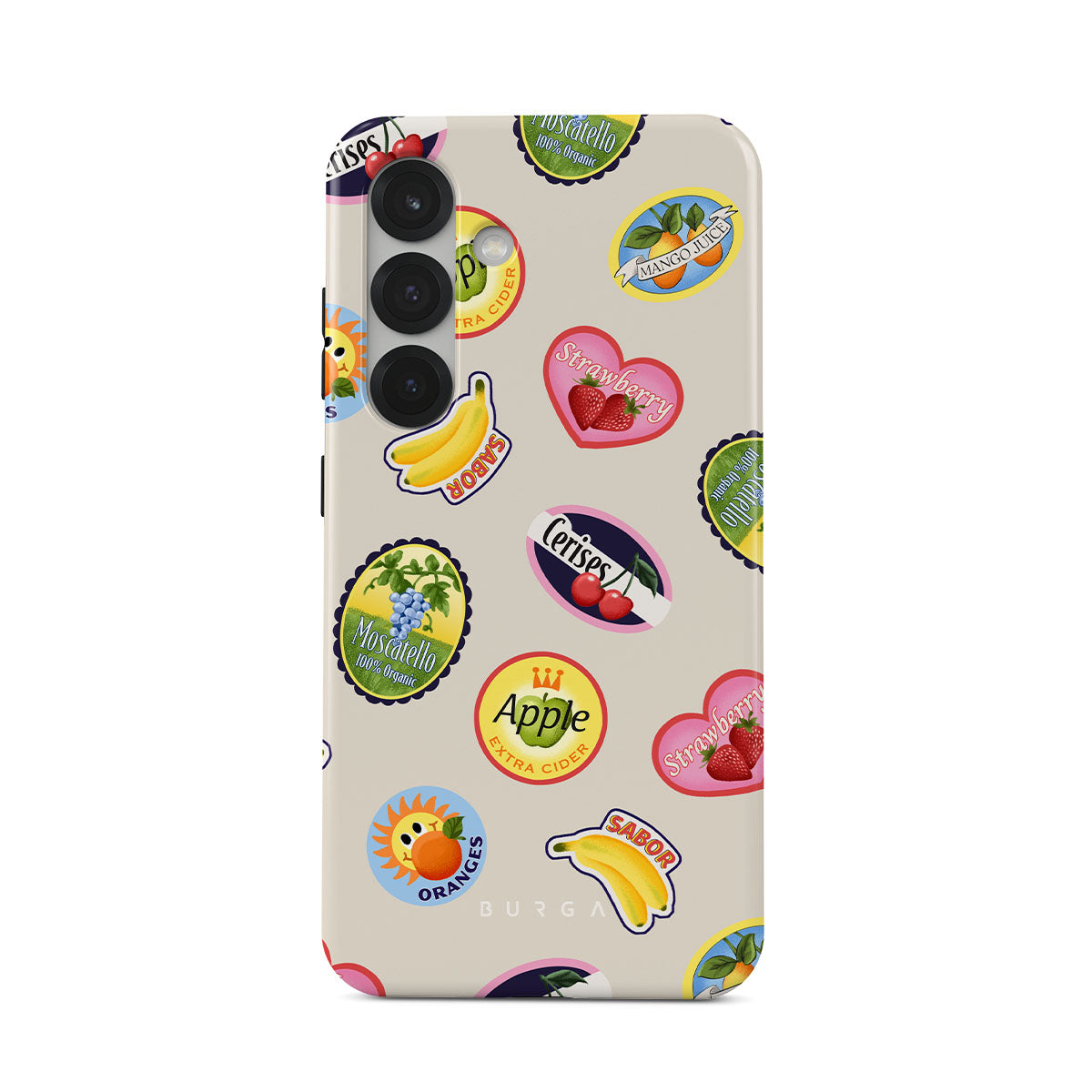 Questo design include: Banane, francobolli, ciliegie, mele, arance, fragole, colori vivaci, accenti di agrumi, motivi fruttati, motivi tropicali.