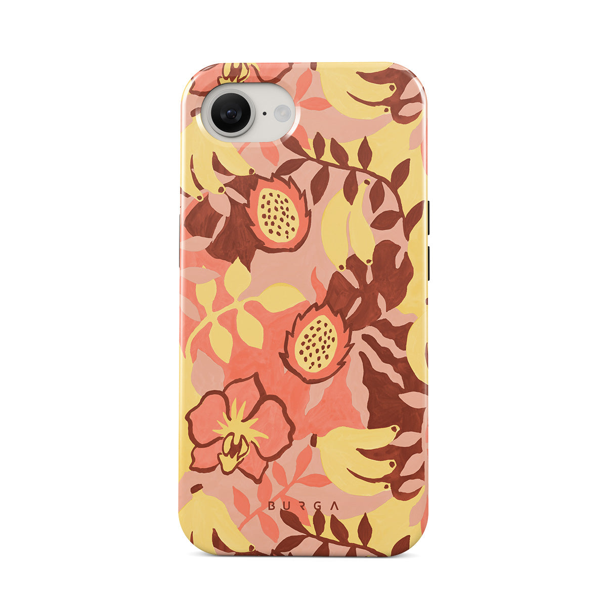Questo design include: banane, guave, mango, motivo di frutta tropicale, fiori