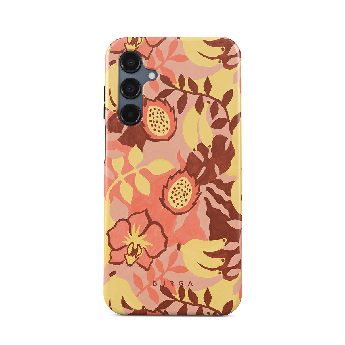 Questo design include: banane, guave, mango, motivo di frutta tropicale, fiori