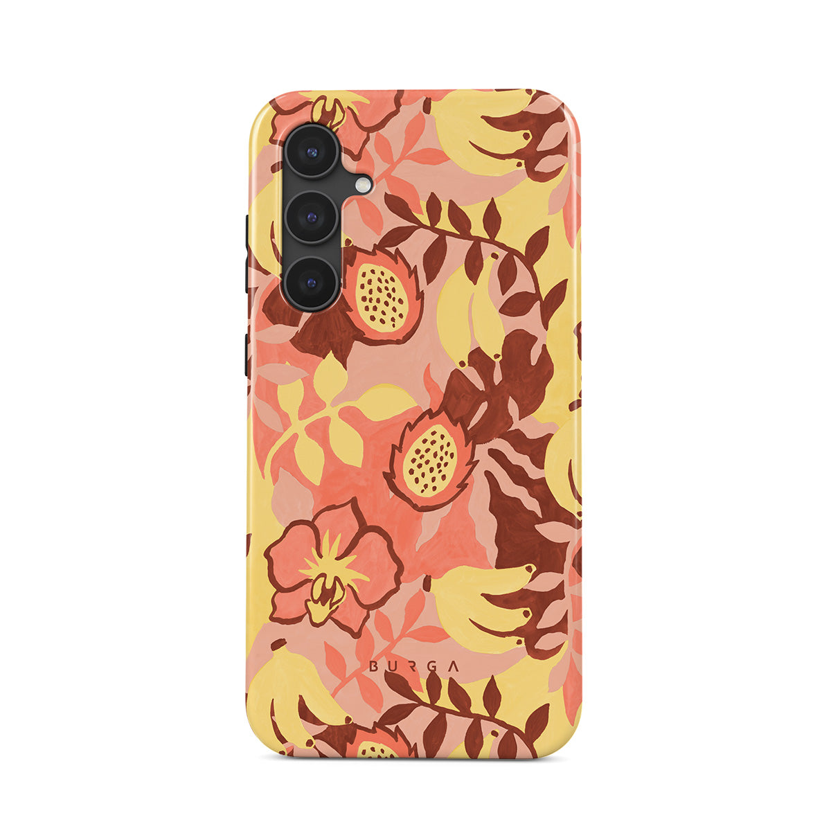 Questo design include: banane, guave, mango, motivo di frutta tropicale, fiori