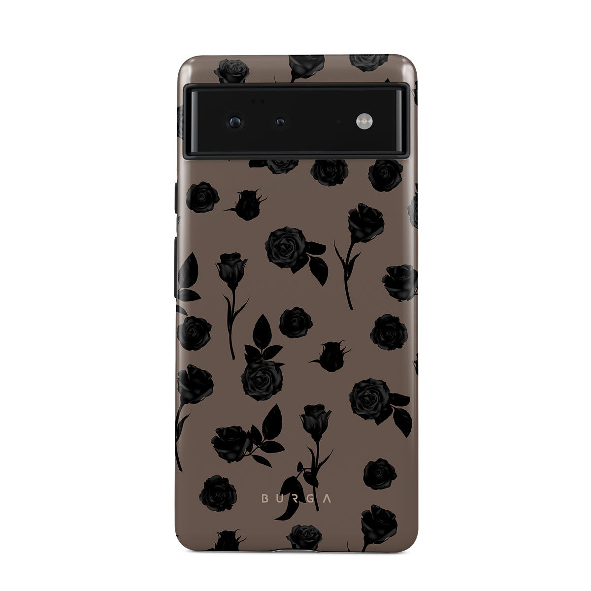 Questo design presenta: rose nere, tonalità della terra, dettagli floreali, fiori scuri.