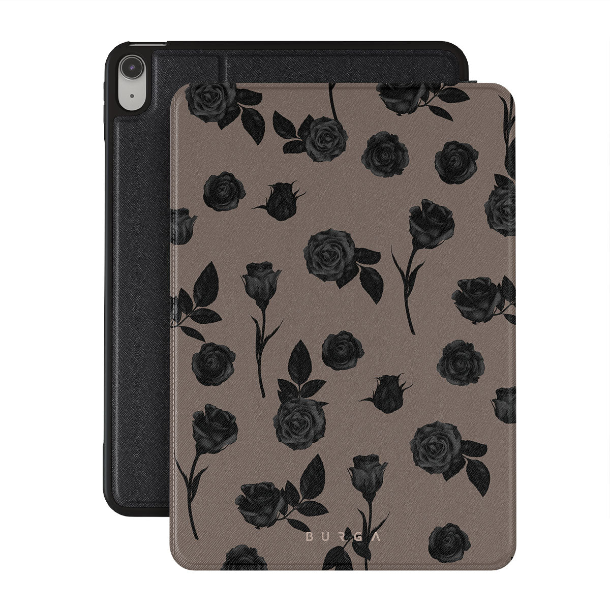 Questo design presenta: rose nere, tonalità della terra, dettagli floreali, fiori scuri.