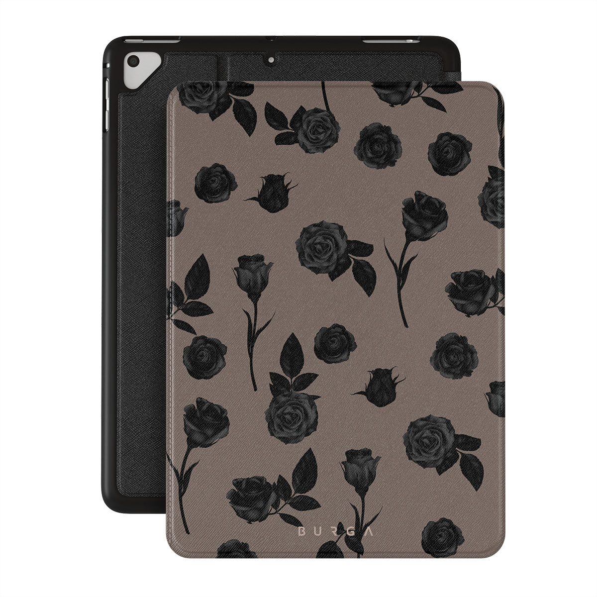Questo design presenta: rose nere, tonalità della terra, dettagli floreali, fiori scuri.