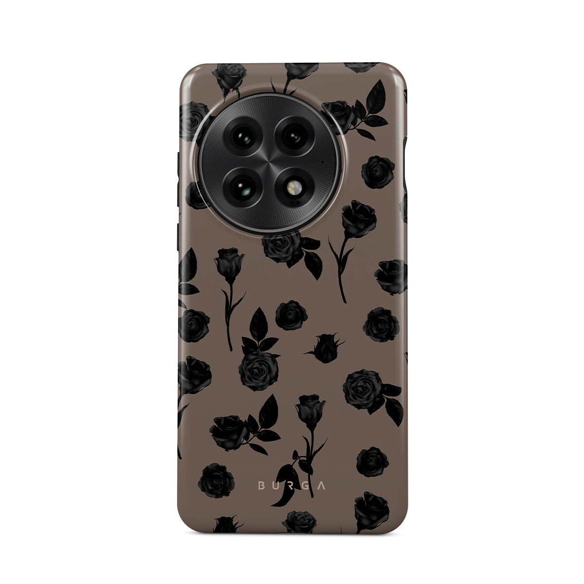 Questo design presenta: rose nere, tonalità della terra, dettagli floreali, fiori scuri.