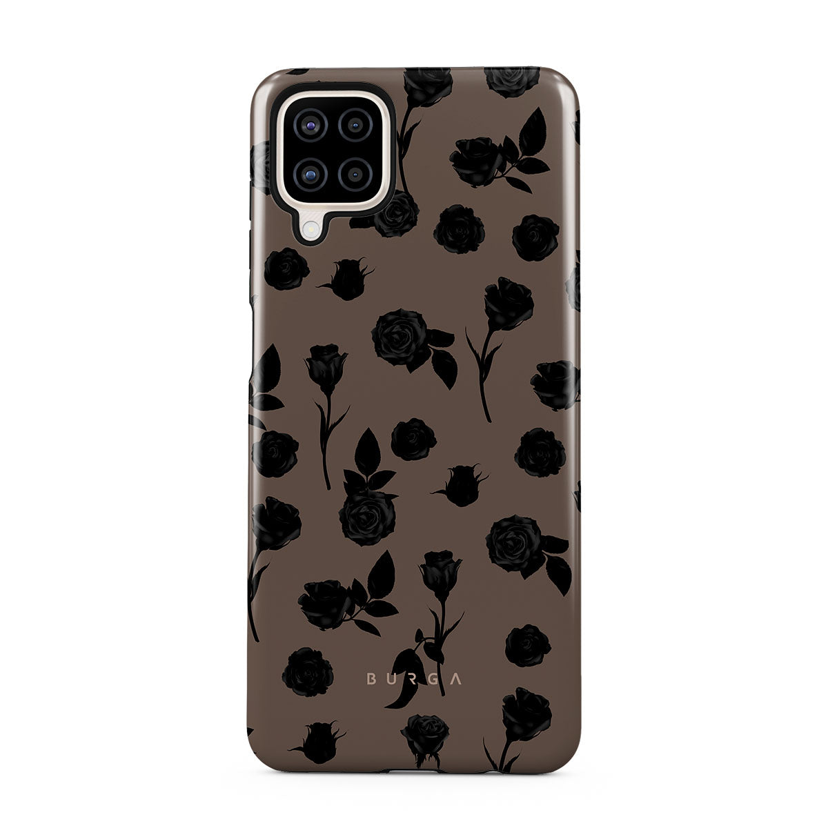 Questo design presenta: rose nere, tonalità della terra, dettagli floreali, fiori scuri.