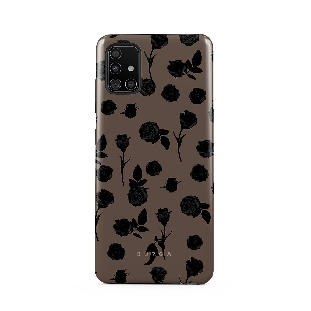 Questo design presenta: rose nere, tonalità della terra, dettagli floreali, fiori scuri.