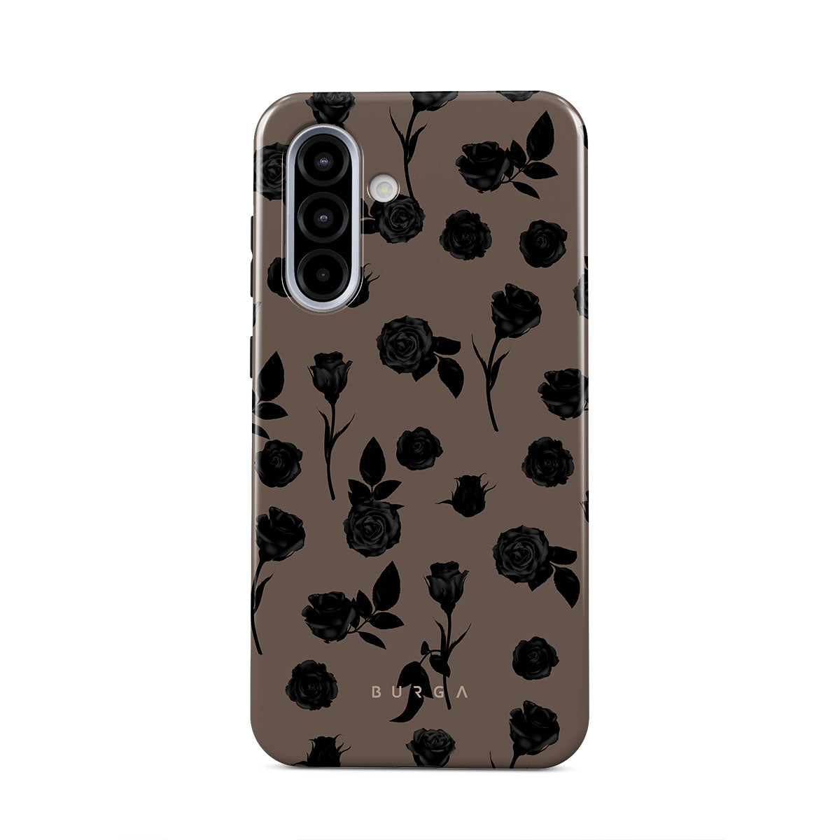 Questo design presenta: rose nere, tonalità della terra, dettagli floreali, fiori scuri.