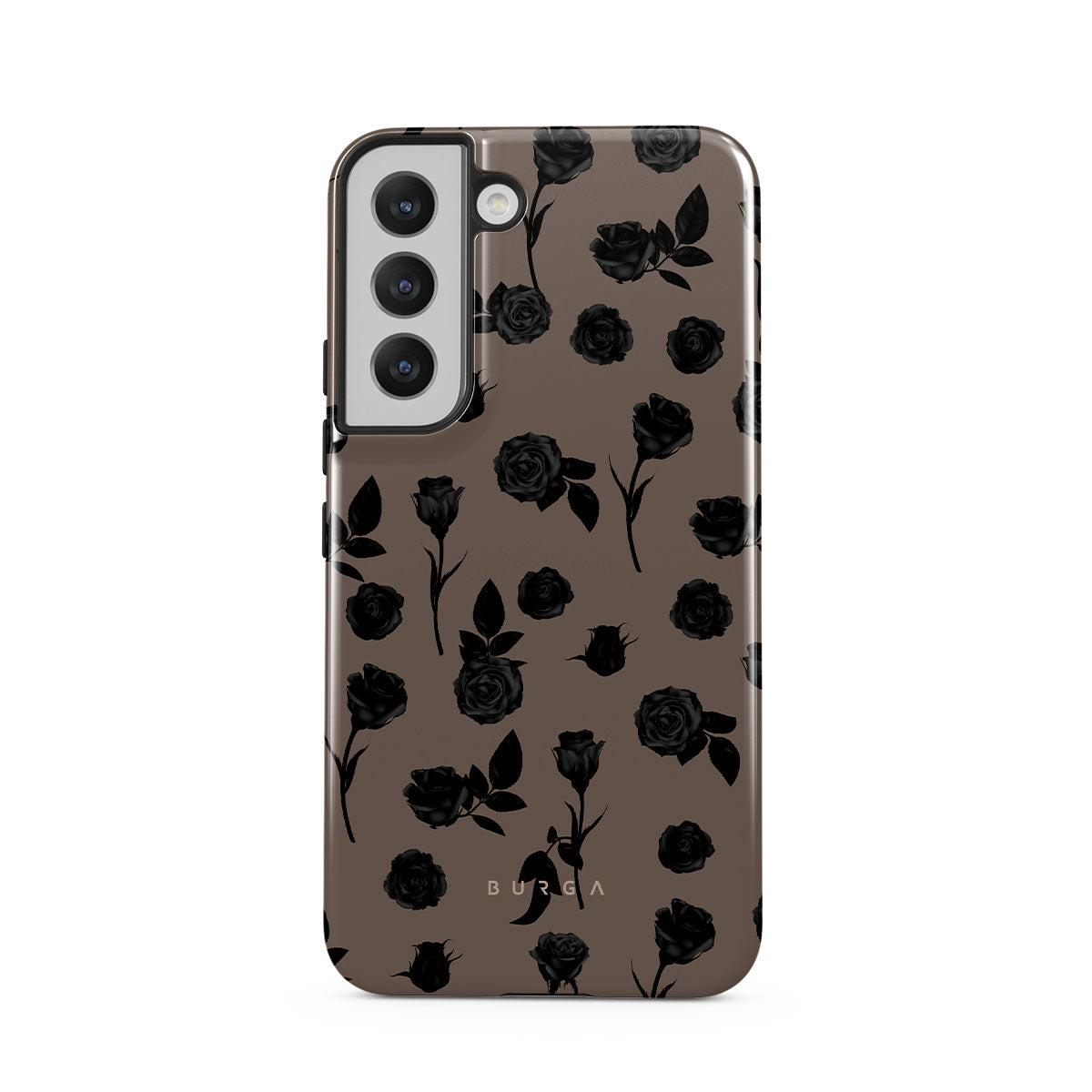 Questo design presenta: rose nere, tonalità della terra, dettagli floreali, fiori scuri.