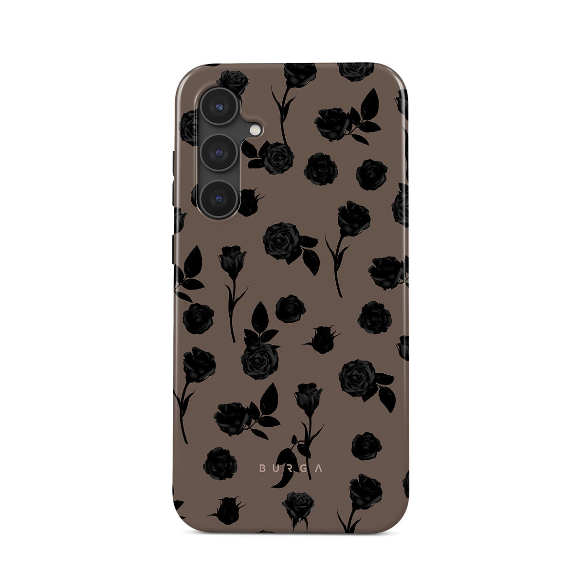 Questo design presenta: rose nere, tonalità della terra, dettagli floreali, fiori scuri.