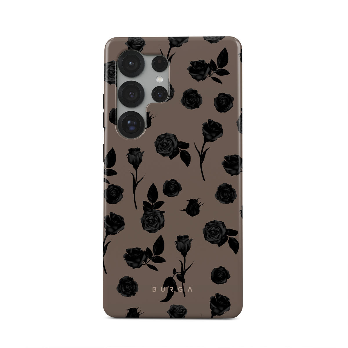 Questo design presenta: rose nere, tonalità della terra, dettagli floreali, fiori scuri.