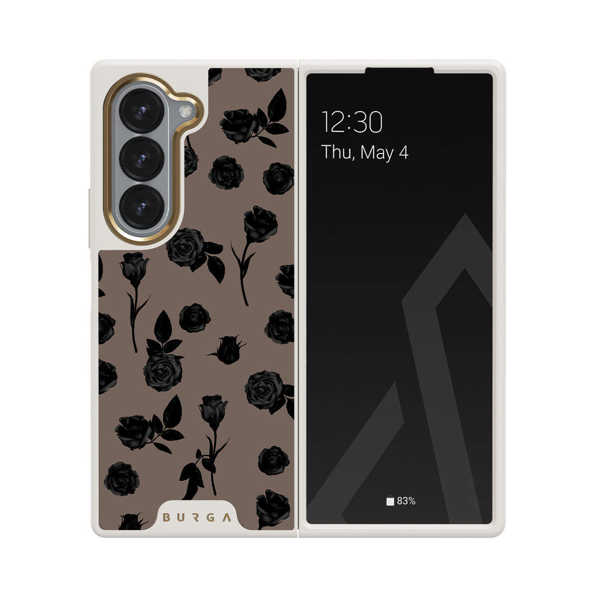 Questo design presenta: rose nere, tonalità della terra, dettagli floreali, fiori scuri.