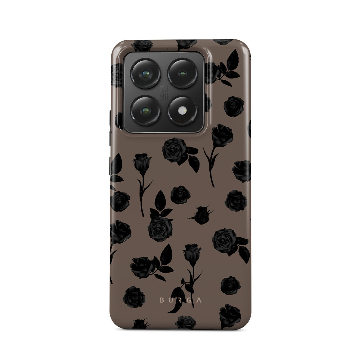 Questo design presenta: rose nere, tonalità della terra, dettagli floreali, fiori scuri.