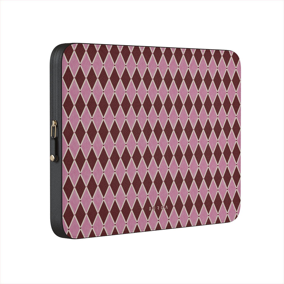 Questo design include: motivo arlecchino, rombi rosa, sfondo rosso intenso