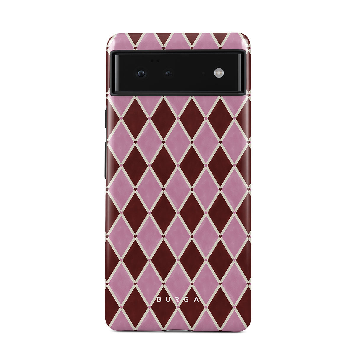 Questo design include: motivo arlecchino, rombi rosa, sfondo rosso intenso