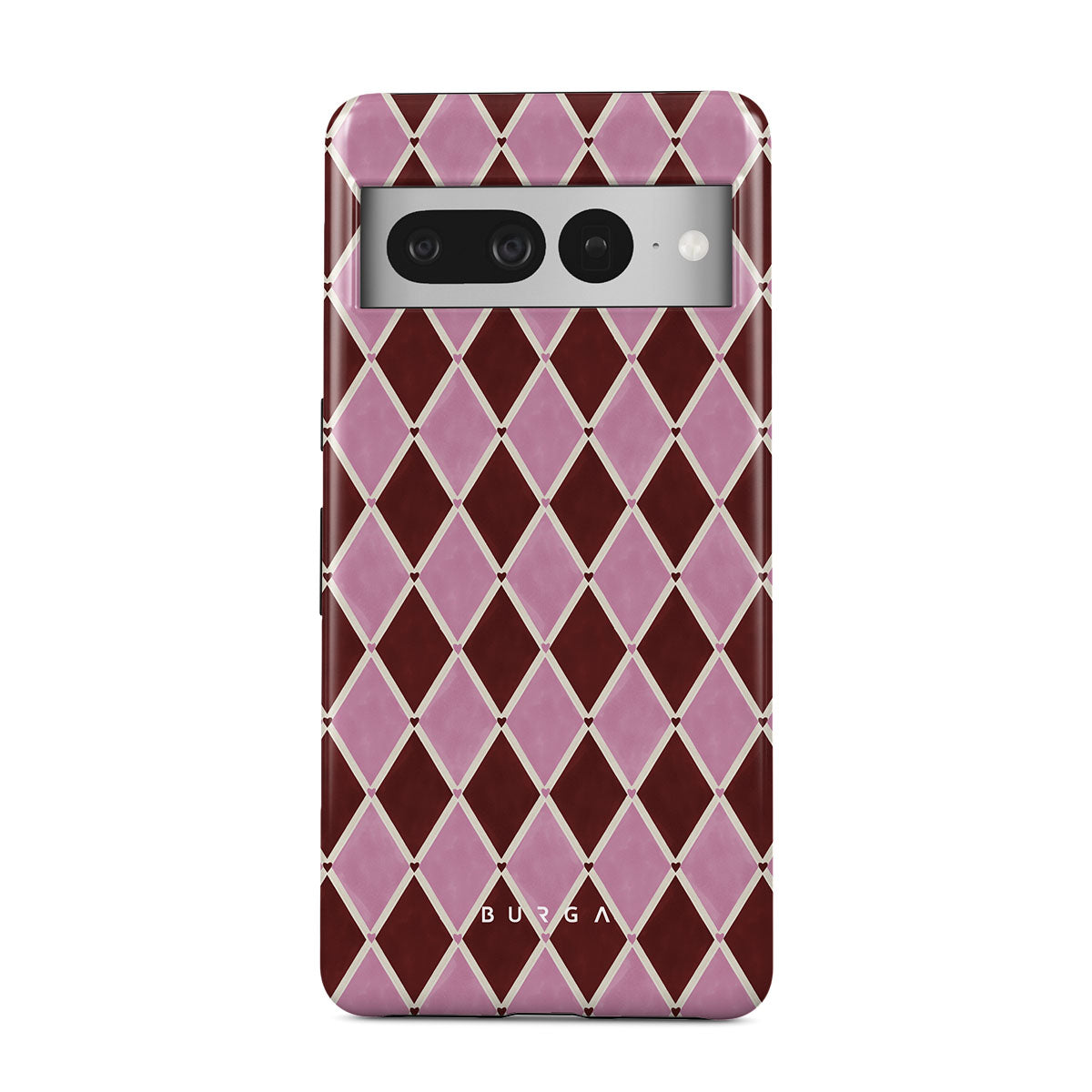 Questo design include: motivo arlecchino, rombi rosa, sfondo rosso intenso