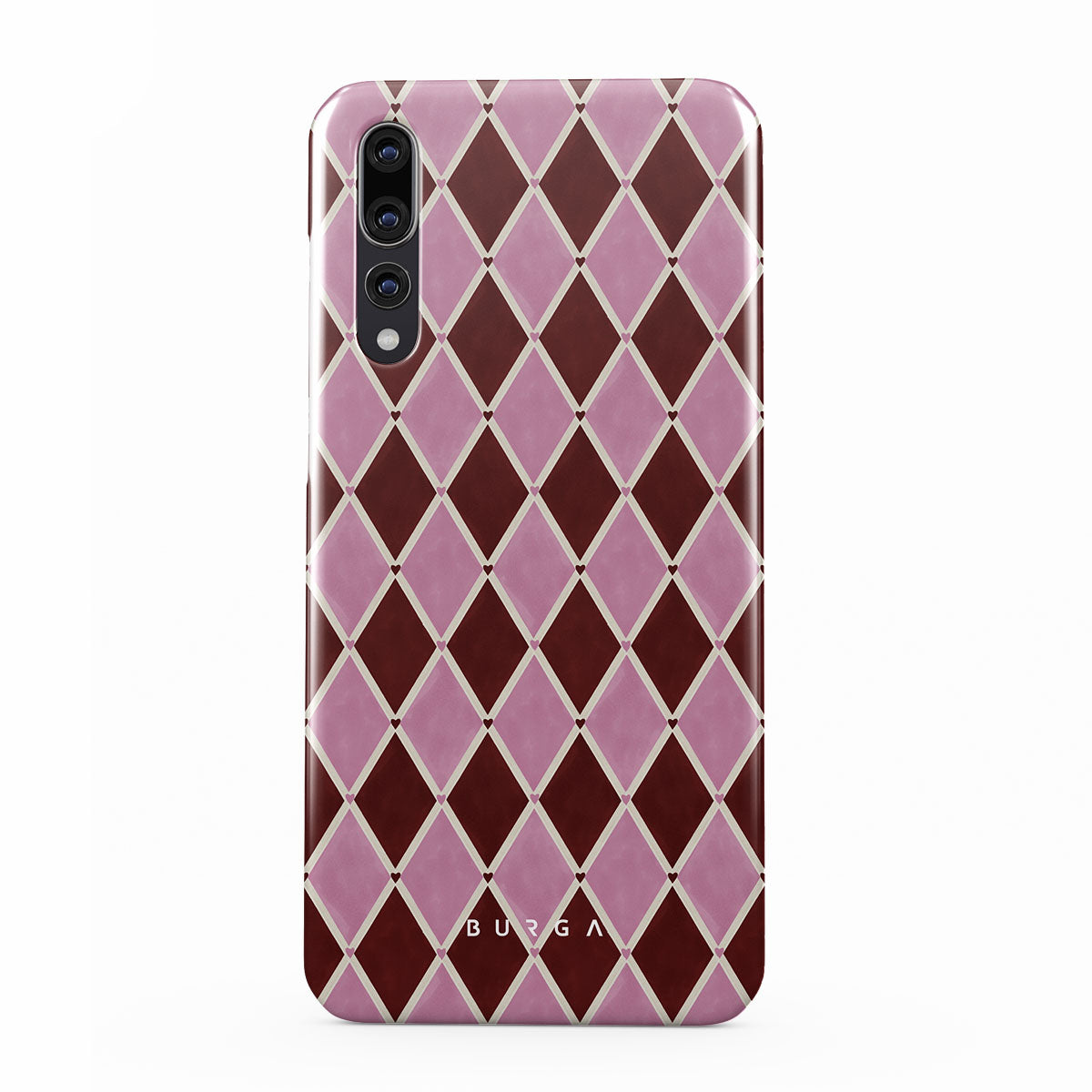 Questo design include: motivo arlecchino, rombi rosa, sfondo rosso intenso
