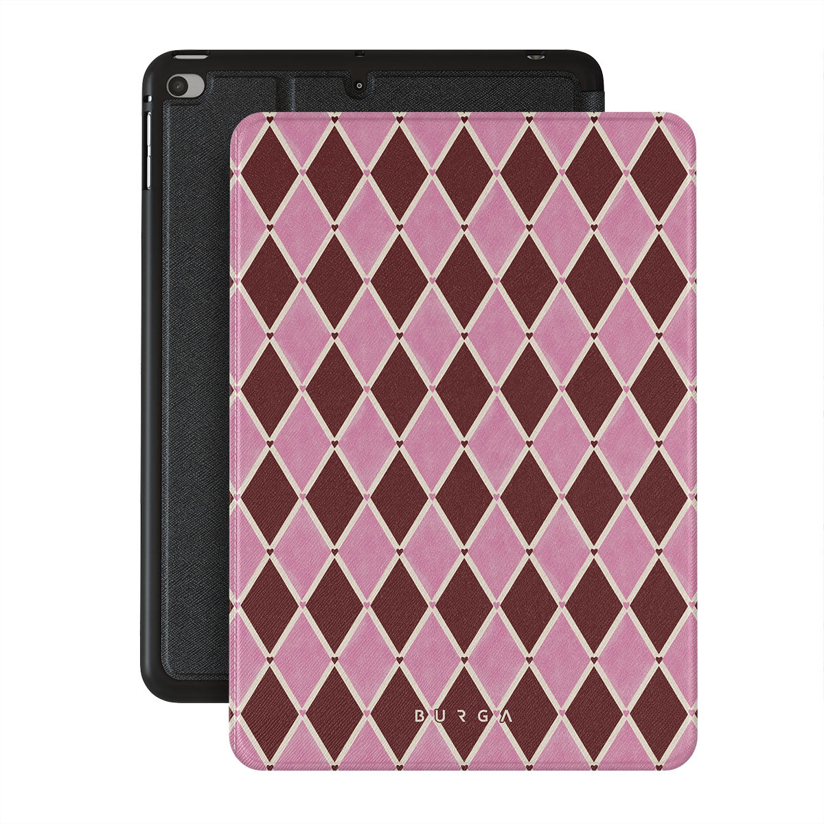 Questo design include: motivo arlecchino, rombi rosa, sfondo rosso intenso