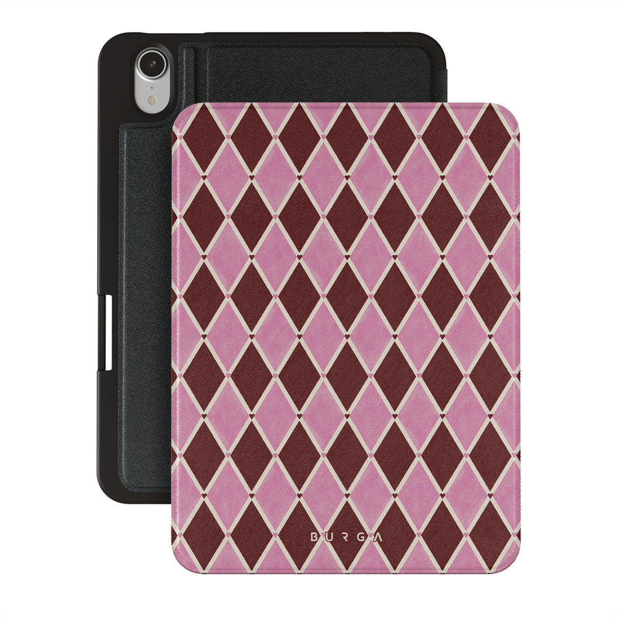 Questo design include: motivo arlecchino, rombi rosa, sfondo rosso intenso