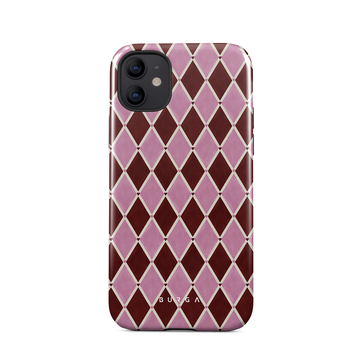 Questo design include: motivo arlecchino, rombi rosa, sfondo rosso intenso