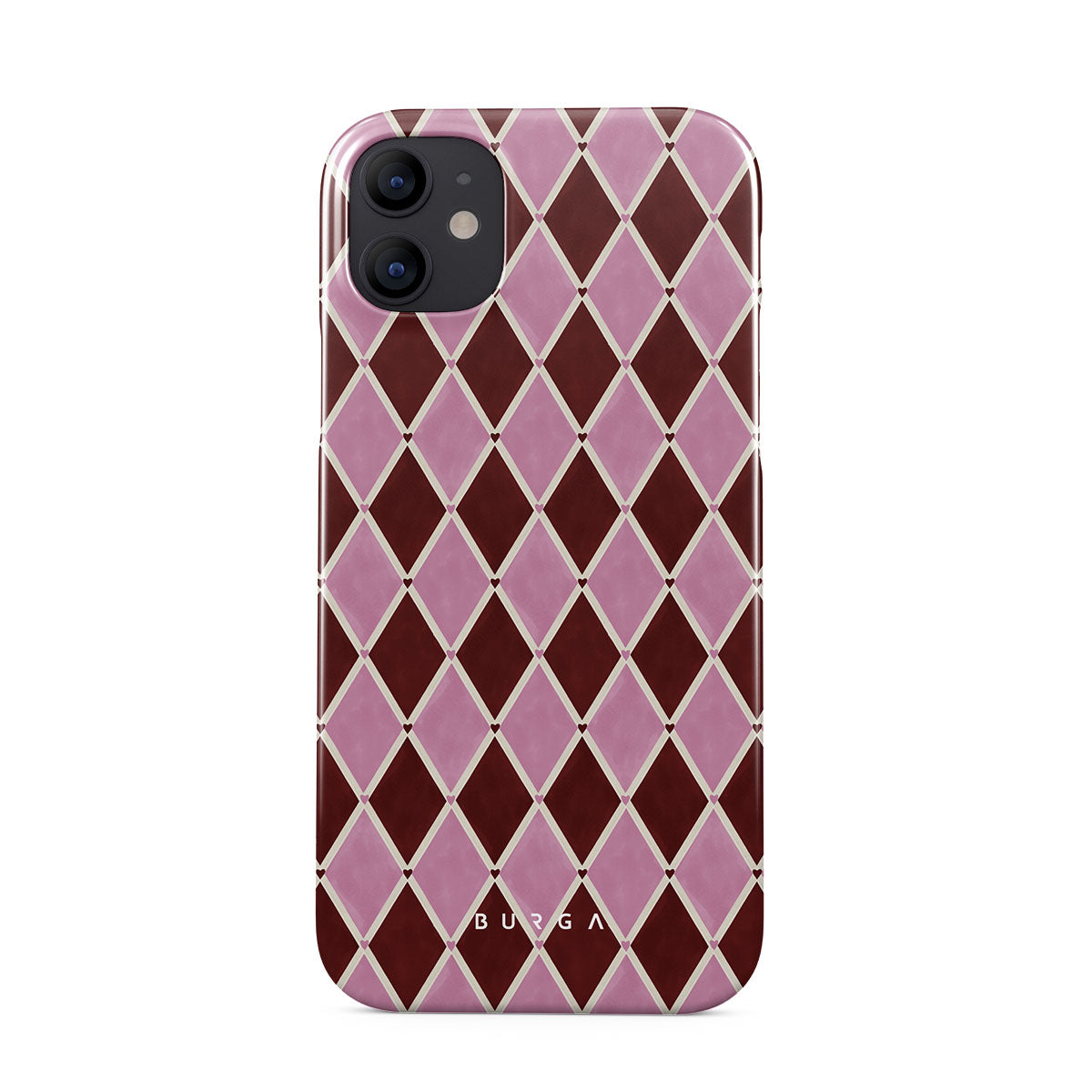 Questo design include: motivo arlecchino, rombi rosa, sfondo rosso intenso