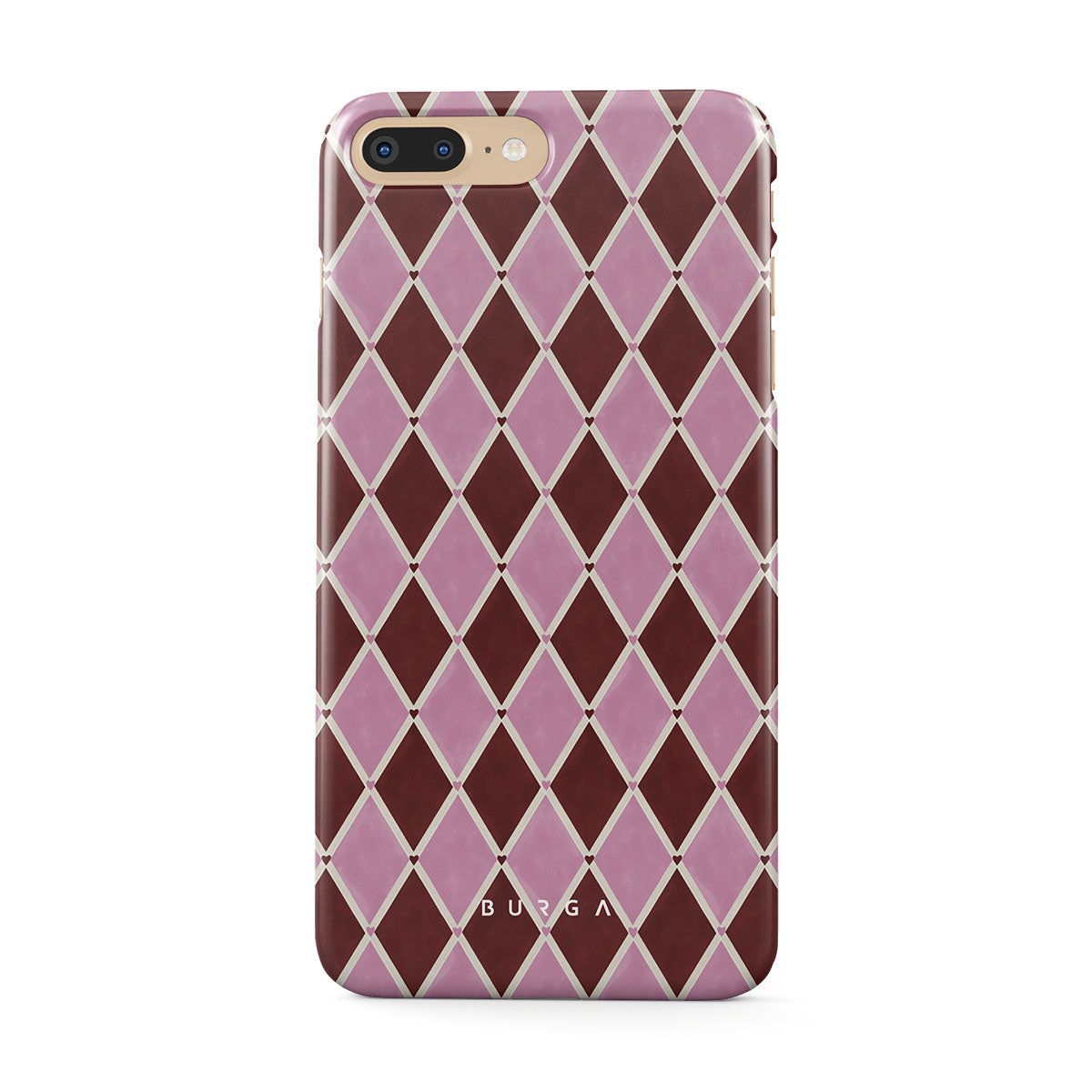 Questo design include: motivo arlecchino, rombi rosa, sfondo rosso intenso