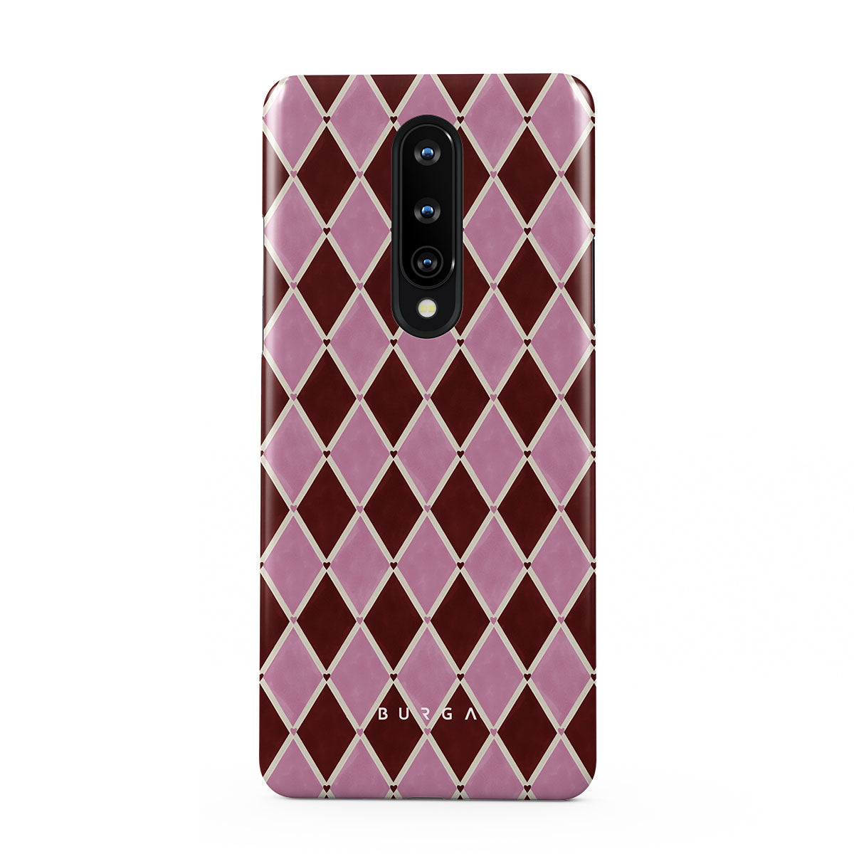 Questo design include: motivo arlecchino, rombi rosa, sfondo rosso intenso