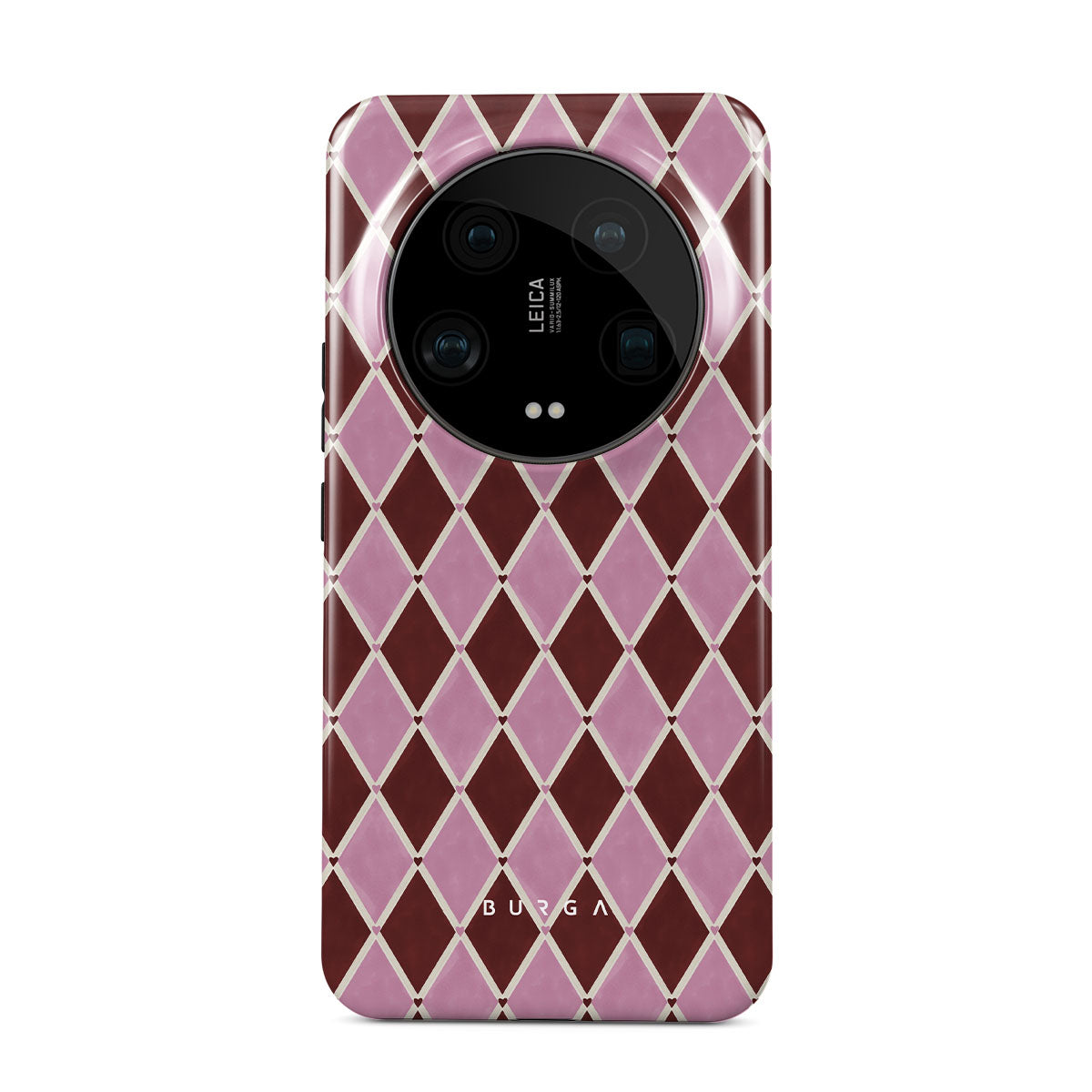 Questo design include: motivo arlecchino, rombi rosa, sfondo rosso intenso