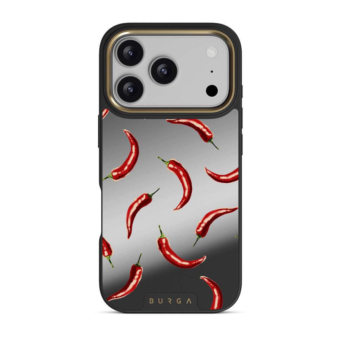 Questo design include: peperoncini, cibo piccante, peperoni rossi, specchio