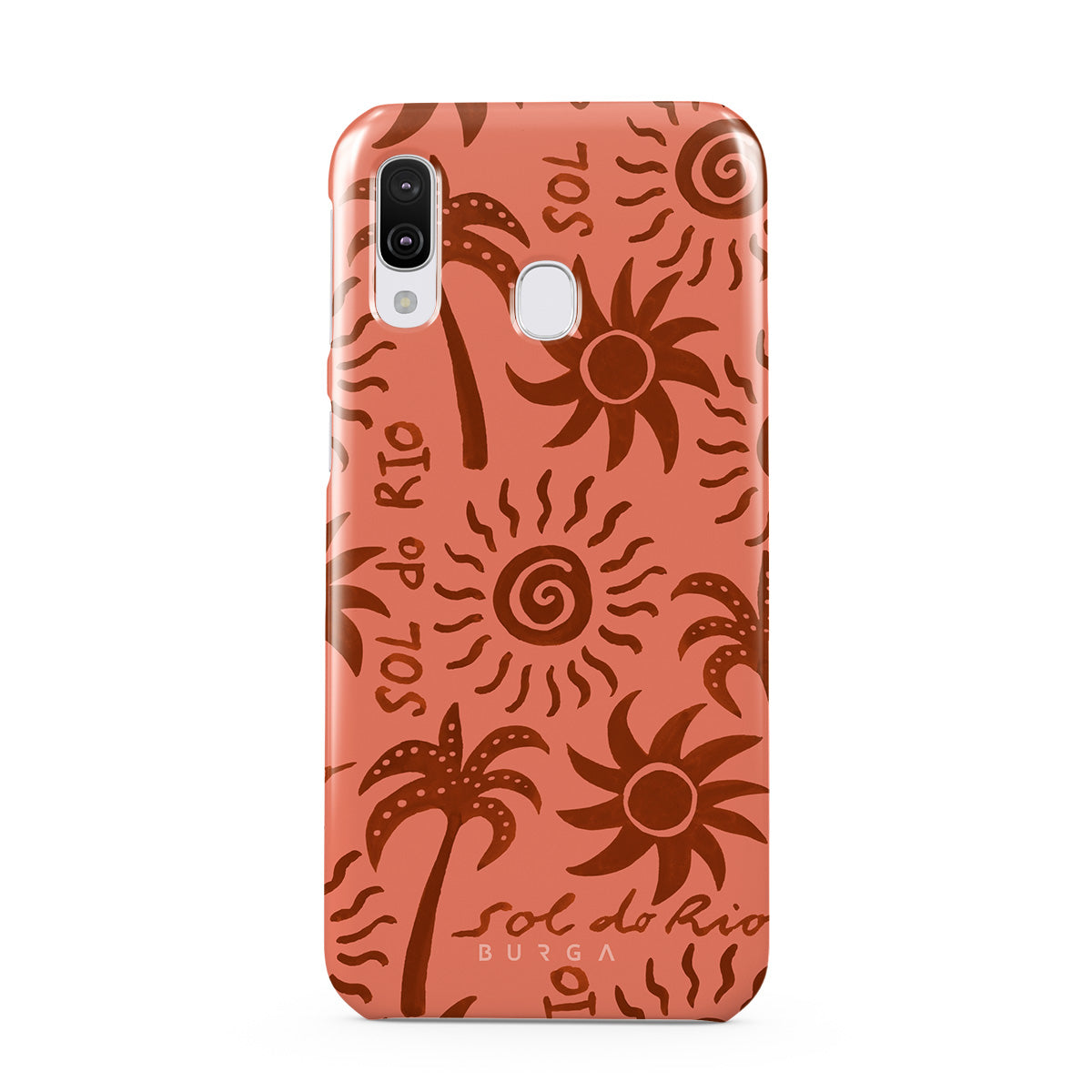 Questo design include: disegni del sole, palme, forme astratte, toni caldi della terra