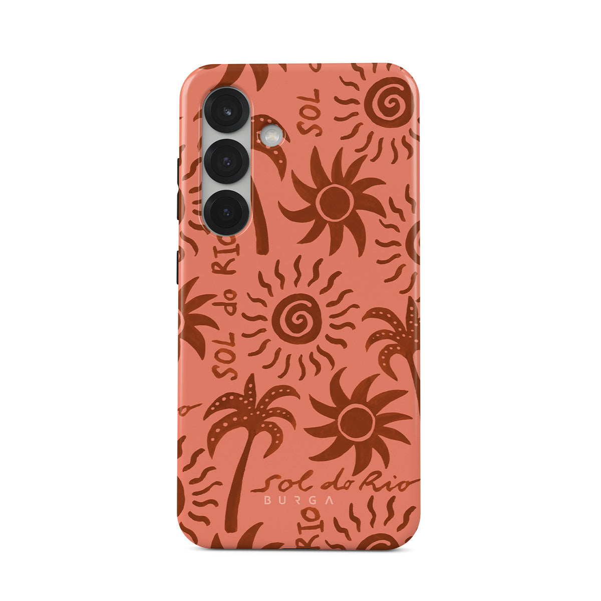 Questo design include: disegni del sole, palme, forme astratte, toni caldi della terra