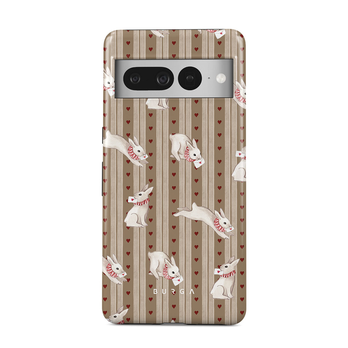 Questo design include: conigli bianchi, cuori, amore, lettere, strisce vintage