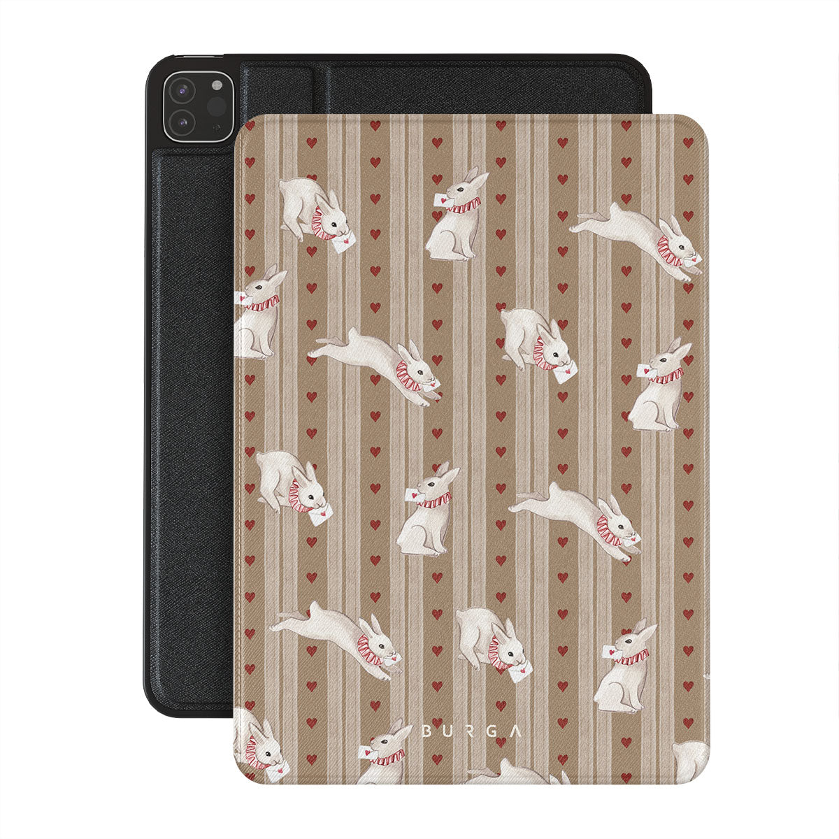Questo design include: conigli bianchi, cuori, amore, lettere, strisce vintage