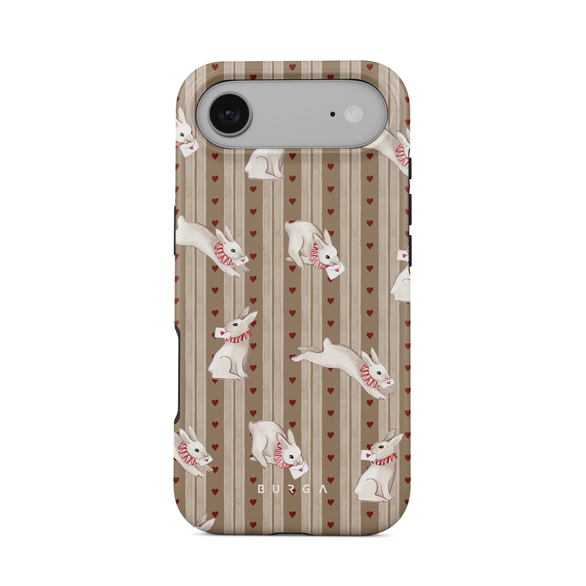 Questo design include: conigli bianchi, cuori, amore, lettere, strisce vintage