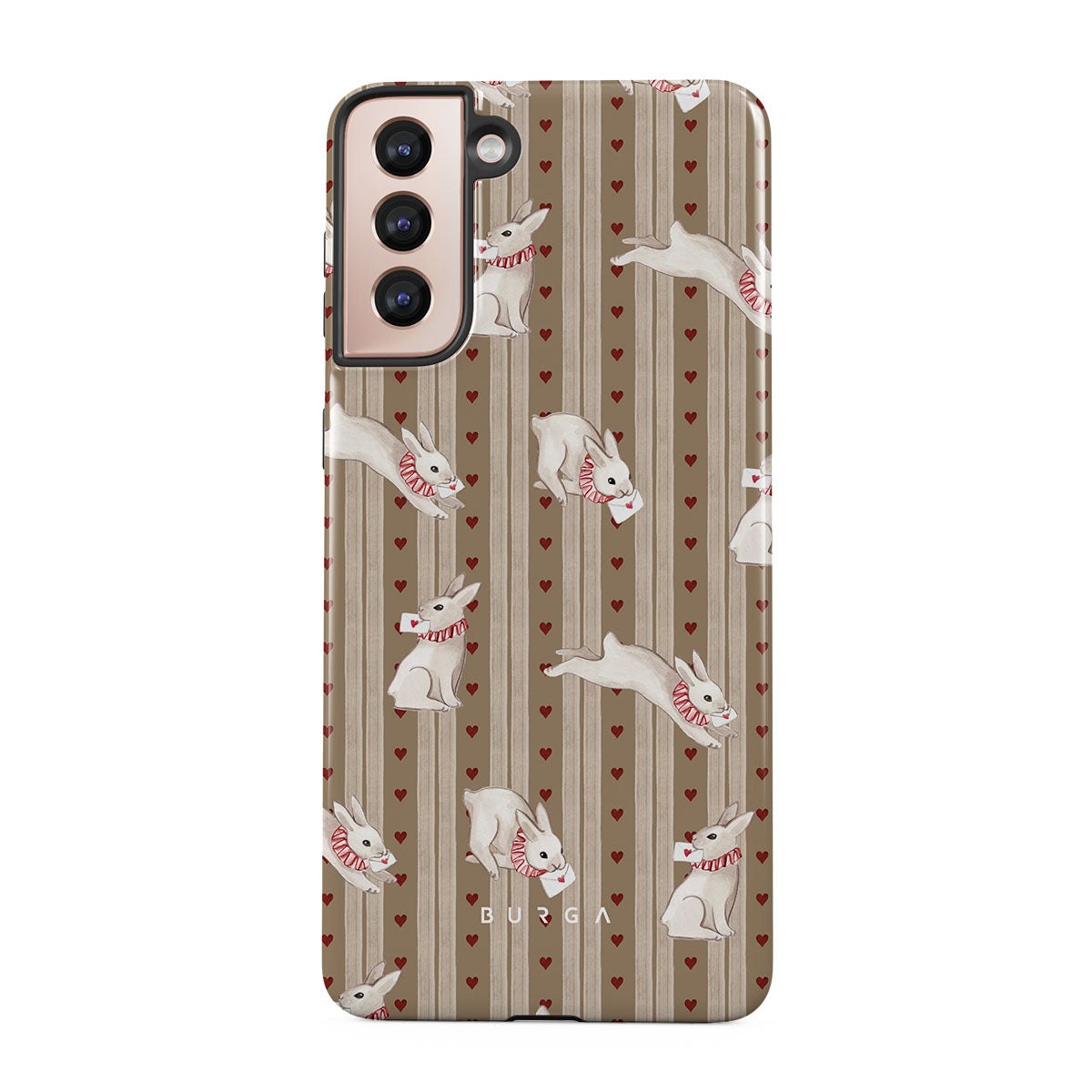 Questo design include: conigli bianchi, cuori, amore, lettere, strisce vintage