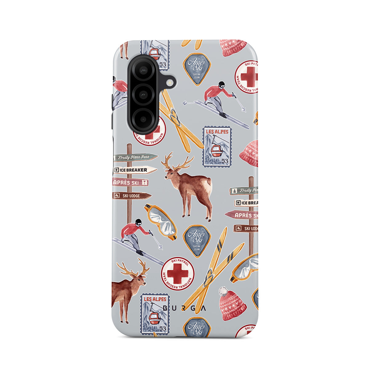 Questo design include: poster vintage da sci, stazione sciistica retro, illustrazione di renna, design di impianto di risalita, motivo alpino, sport invernali, stile classico rifugio sciistico, grafica di resort montani