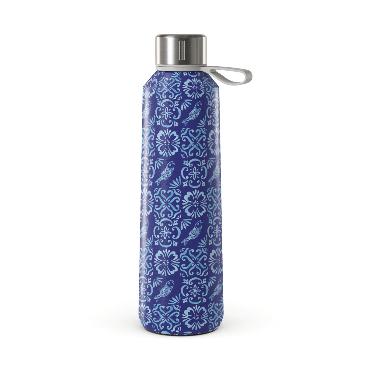 Questo design include: motivi di piastrelle portoghesi, blu profondi, motivi floreali, fiori, pesci