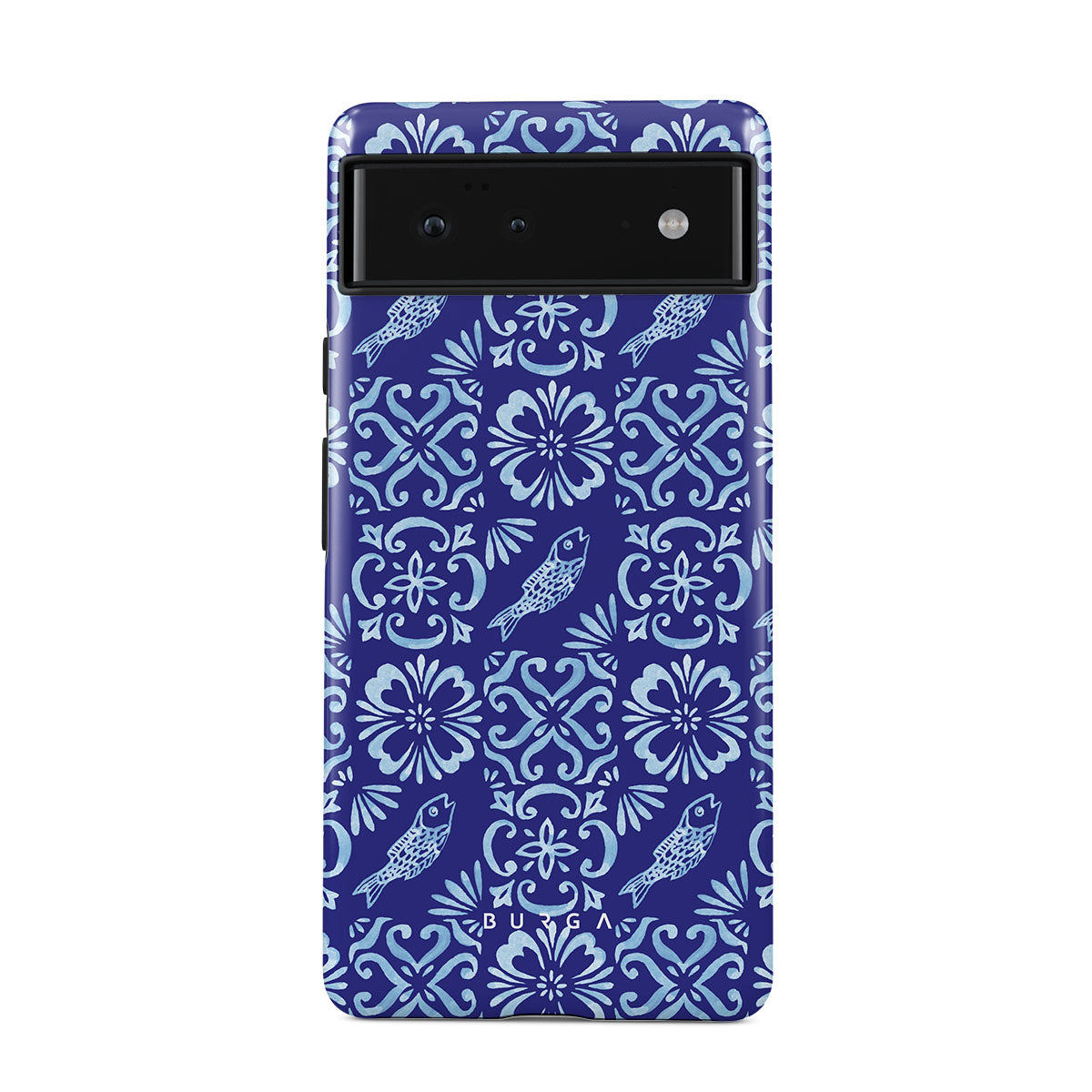 Questo design include: motivi di piastrelle portoghesi, blu profondi, motivi floreali, fiori, pesci