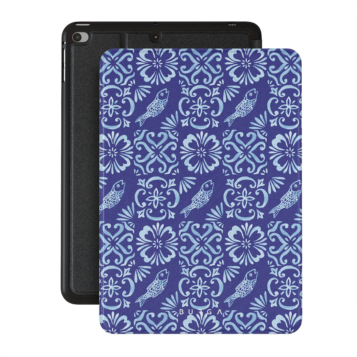 Questo design include: motivi di piastrelle portoghesi, blu profondi, motivi floreali, fiori, pesci