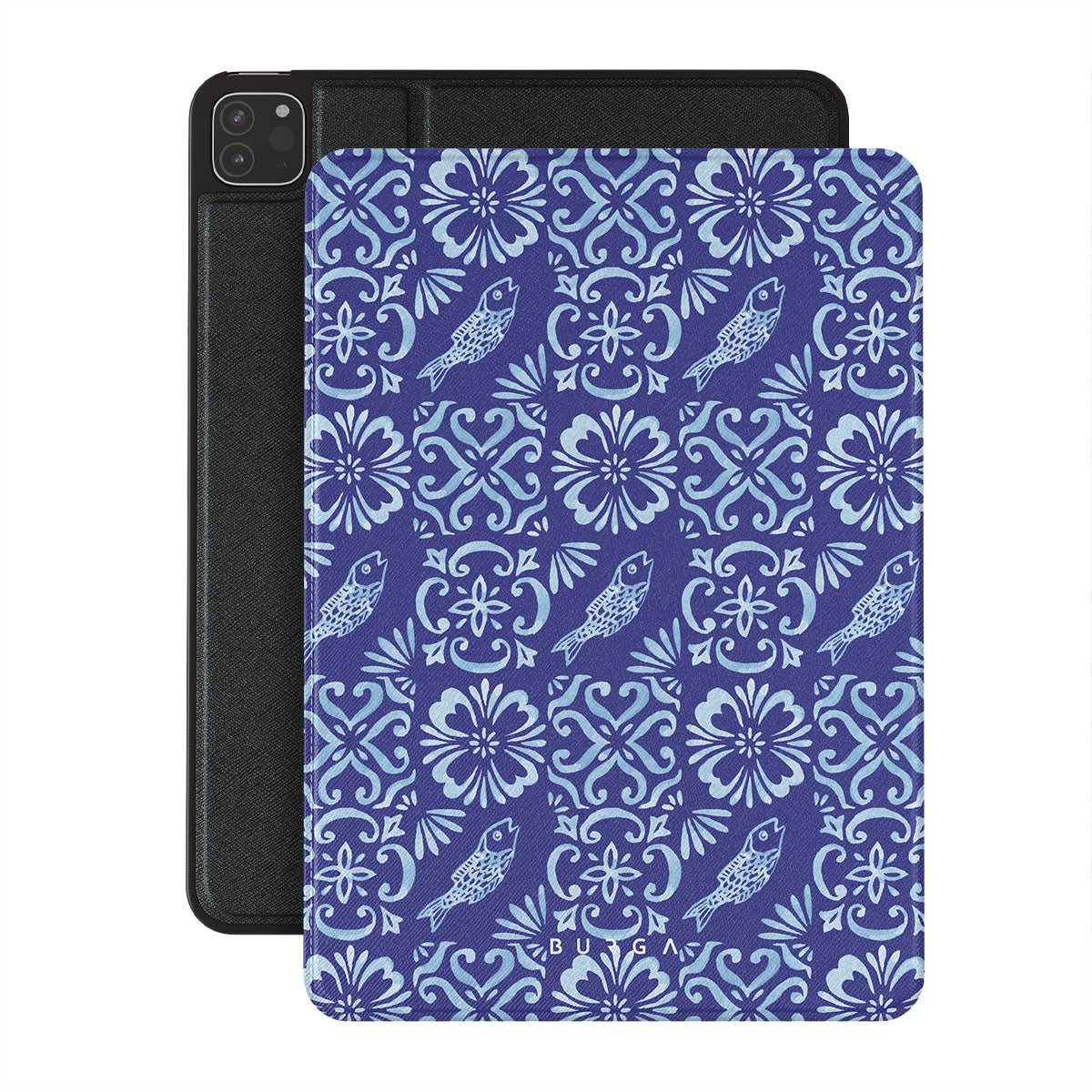 Questo design include: motivi di piastrelle portoghesi, blu profondi, motivi floreali, fiori, pesci