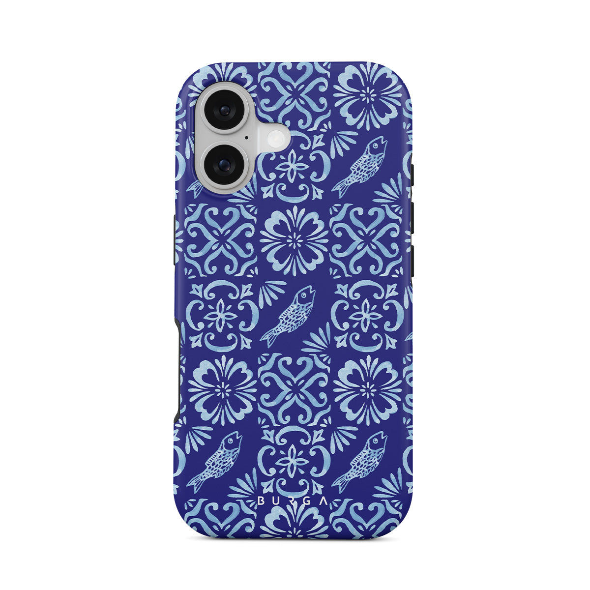 Questo design include: motivi di piastrelle portoghesi, blu profondi, motivi floreali, fiori, pesci
