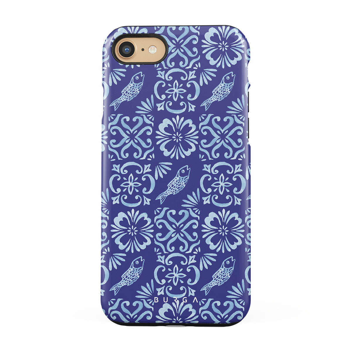 Questo design include: motivi di piastrelle portoghesi, blu profondi, motivi floreali, fiori, pesci