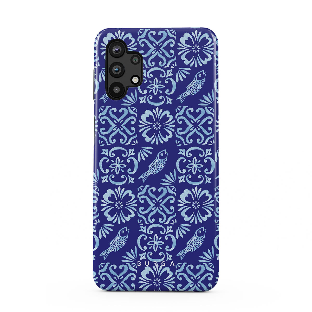 Questo design include: motivi di piastrelle portoghesi, blu profondi, motivi floreali, fiori, pesci