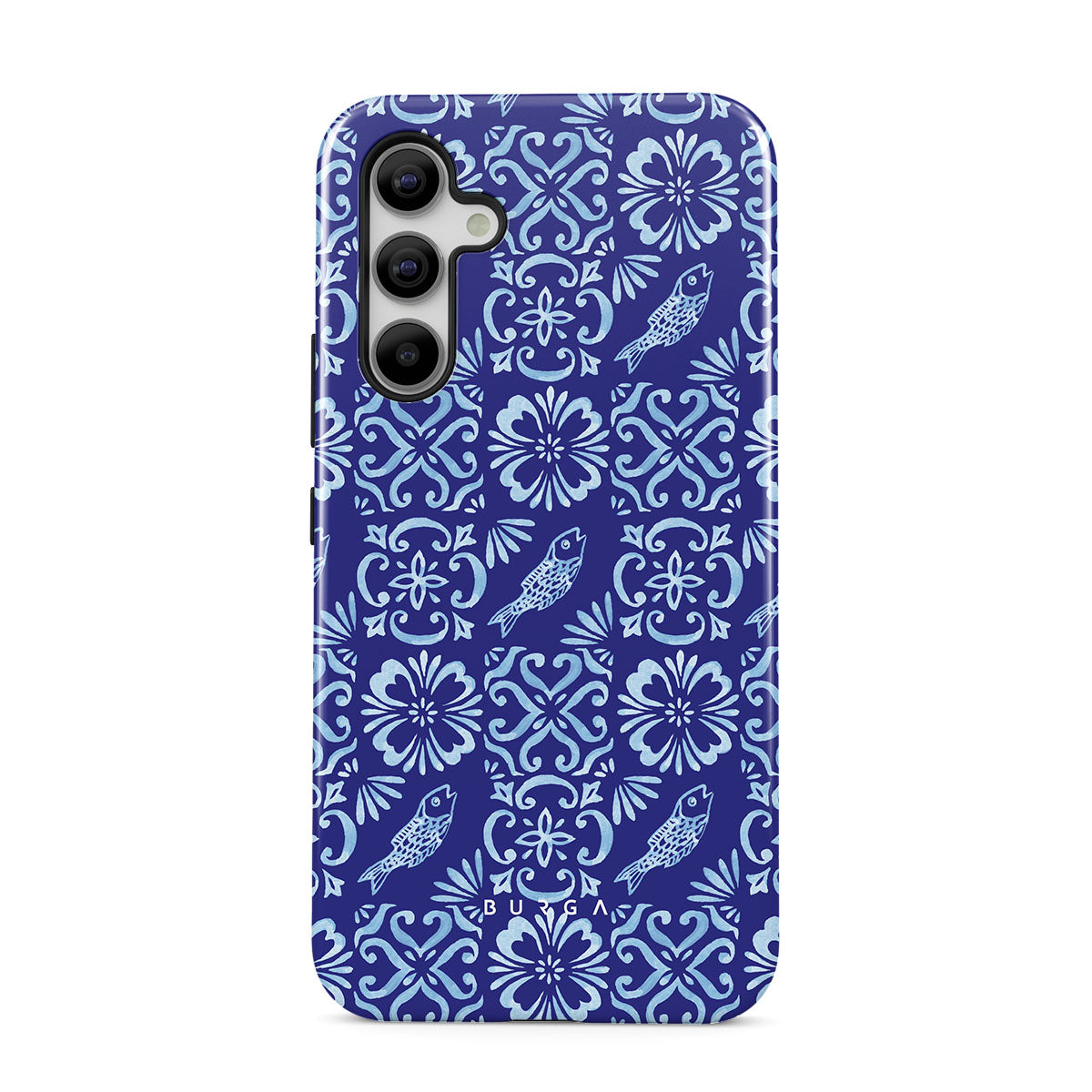 Questo design include: motivi di piastrelle portoghesi, blu profondi, motivi floreali, fiori, pesci