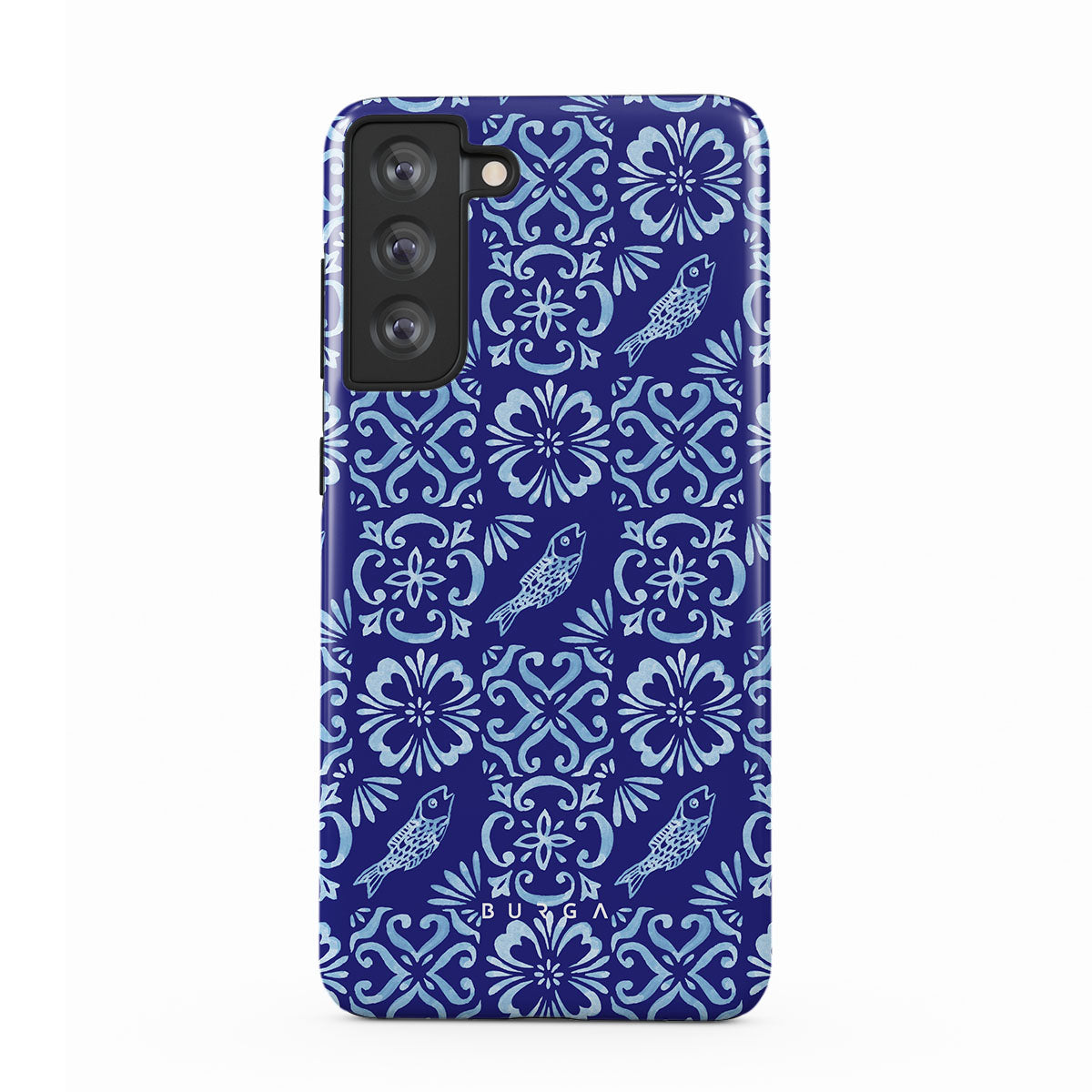Questo design include: motivi di piastrelle portoghesi, blu profondi, motivi floreali, fiori, pesci