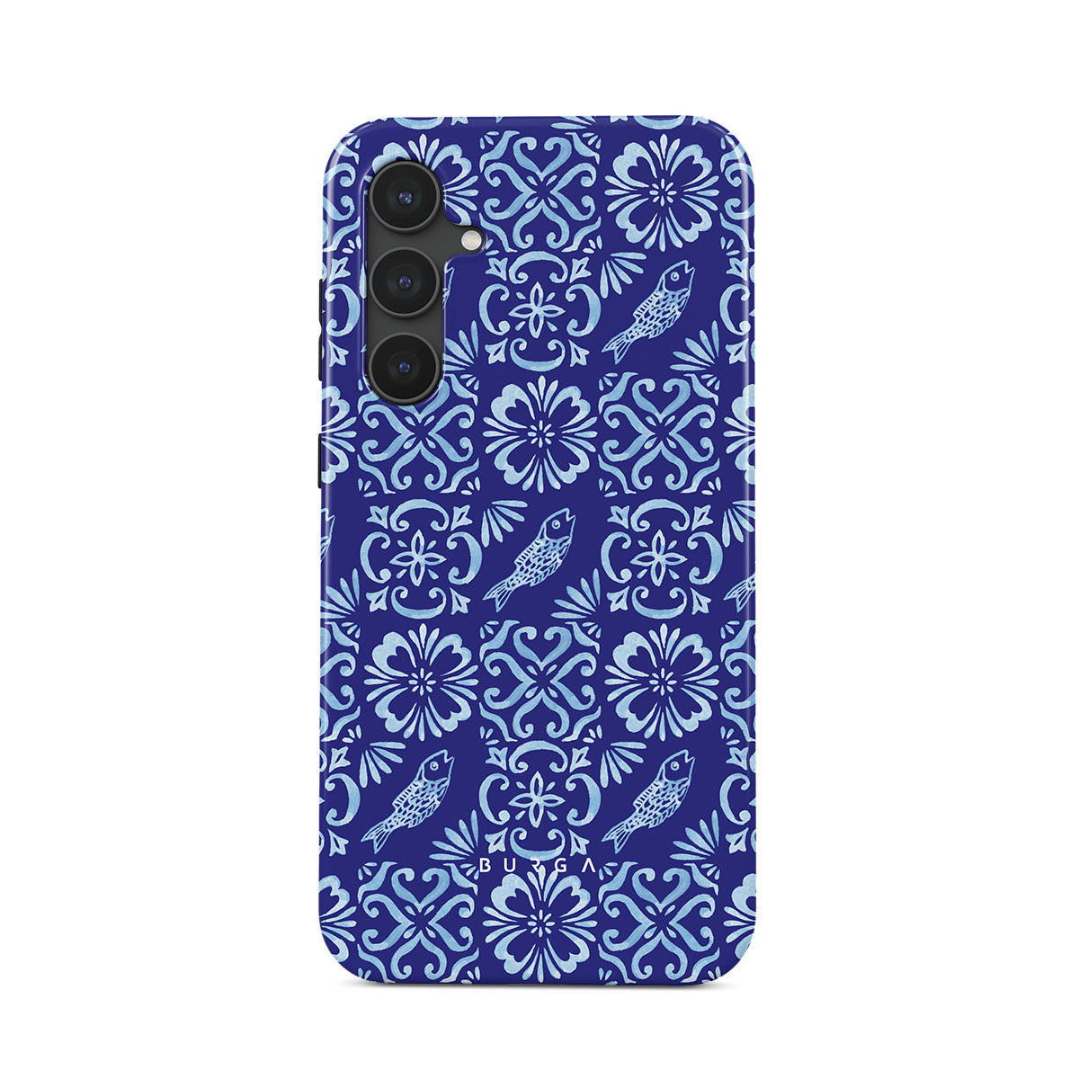 Questo design include: motivi di piastrelle portoghesi, blu profondi, motivi floreali, fiori, pesci
