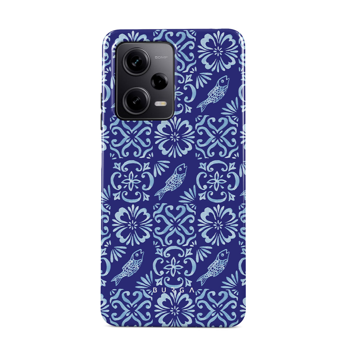 Questo design include: motivi di piastrelle portoghesi, blu profondi, motivi floreali, fiori, pesci