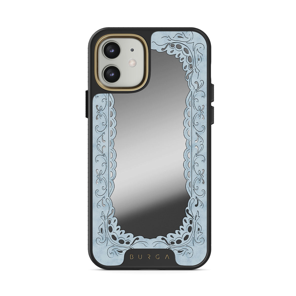 Questo design include: cornice blu, cornice vintage, effetto specchio