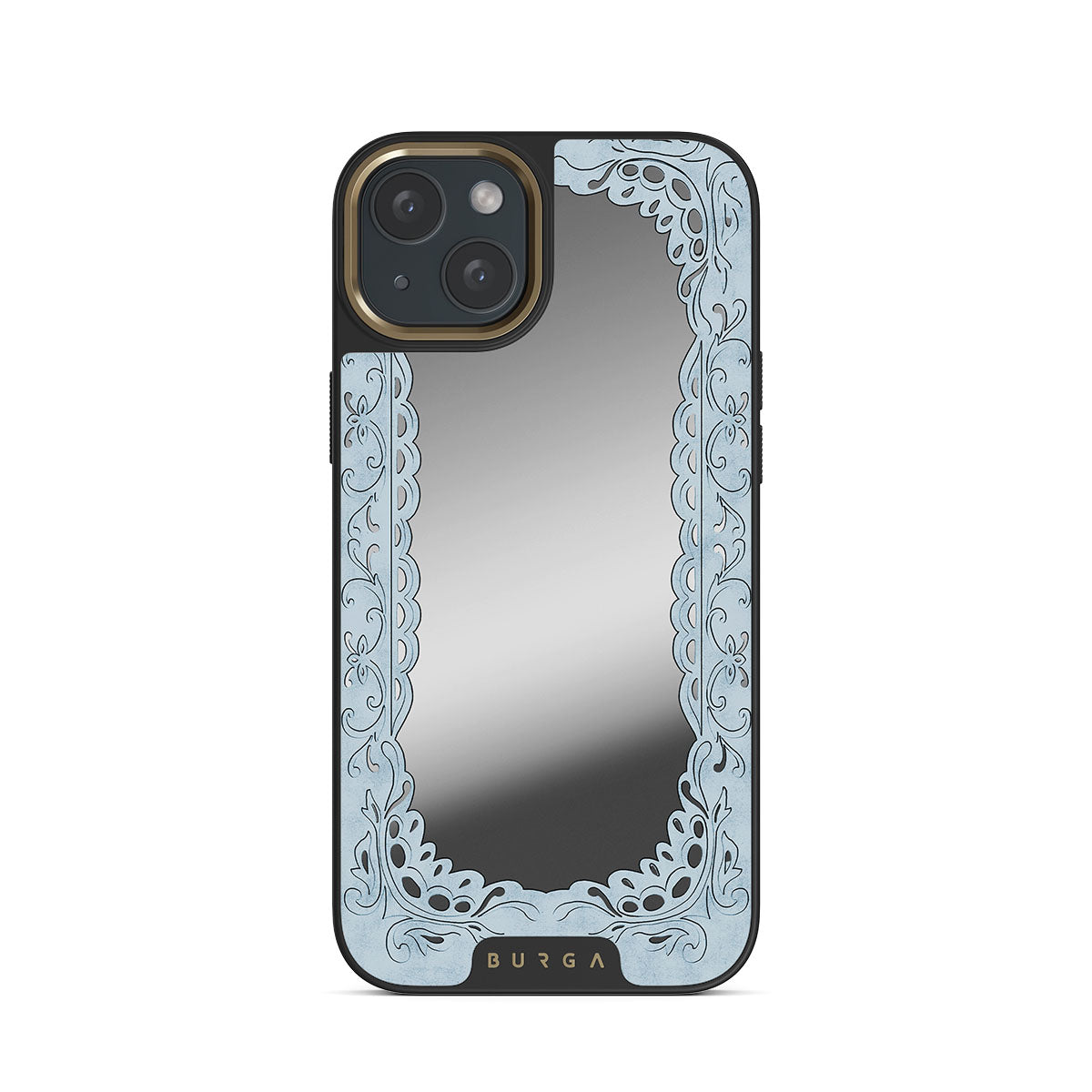 Questo design include: cornice blu, cornice vintage, effetto specchio