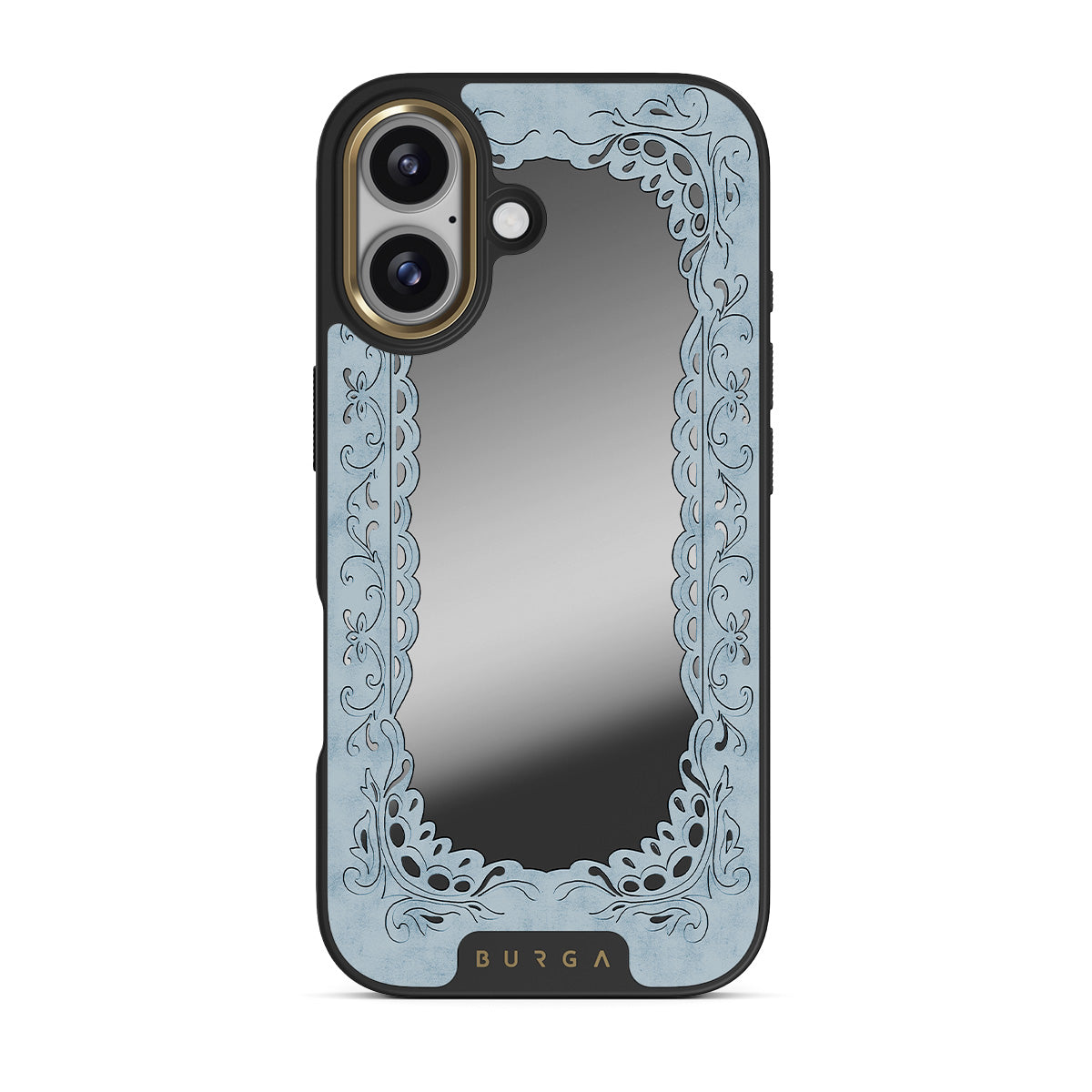 Questo design include: cornice blu, cornice vintage, effetto specchio