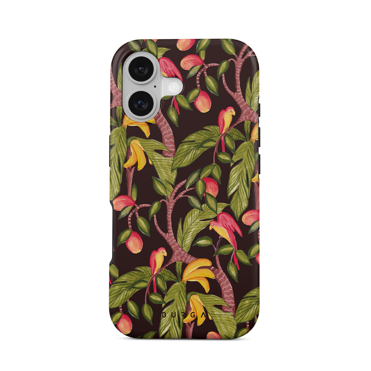 Questo design include: mango, foglie verde scuro, motivo ispirato alla giungla